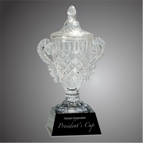 Crystal Cup on Black Base Premier Cup Crystal is mounted on a black base. This crystal is great for all needs. Your custom logo can be added at no extra charge.
