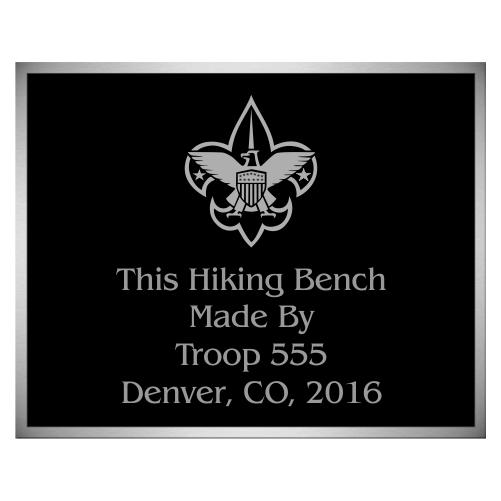 This aluminum casting plaque can practically be any size, shape or design. The standard thickness is 1/8". However, thicker plaques are available. The engraving can be cast in a variety of different fonts. Aluminum casting plaques can be personalized with different border styles as well as emblems, photos and logos. The letters, emblems and border are raised natural aluminum. Plate designs, color and texture may vary.